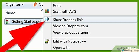 - У папці Dropbox на вашому комп'ютері клацніть правою кнопкою миші на файлі або папці, доступ до якої Ви хочете відкрити і виберіть "Share Dropbox Link"(поділитися посиланням). Таким чином ви скопіюєте посилання на файл в буфер обміну. Вставте це посилання у Ваш електронний лист.