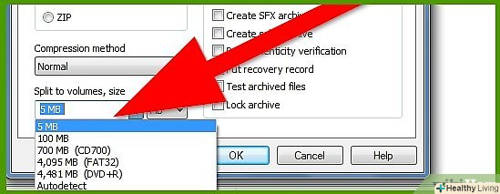 - Розділіть вихідний файл на файли меншого розміру за допомогою програми WinRar (архіватор). Ця програма також повинна бути встановлена на комп'ютері одержувача, щоб відновити цілісність вихідного файлу.