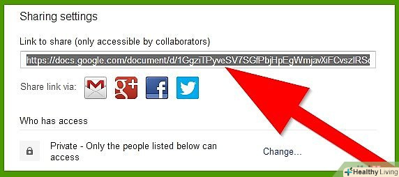 Вирішіть, як ви хочете поділитися файлом. ви можете надіслати повідомлення електронною поштою безпосередньо з Google Drive, або ви можете скопіювати посилання на файл, розташовану у верхній частині вікна «налаштування спільного доступу».