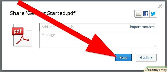 Додайте файли в Dropbox, використовуючи або сайт dropbox.com, або папку Dropbox на вашому комп'ютері.- Використовуйте спільний доступ на Dropbox і відкрийте доступ до файлу потрібній людині. ви можете це зробити безпосередньо з папки Dropbox на вашому комп'ютері або на сайті Dropbox.com.