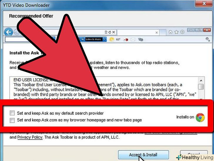 Встановіть програму. під час установки, програма запропонує вам встановити тулбари і різні рекламні програми. Перед установкою, зніміть галочки з усіх додаткових програм, оскільки згодом їх буде непросто видалити.