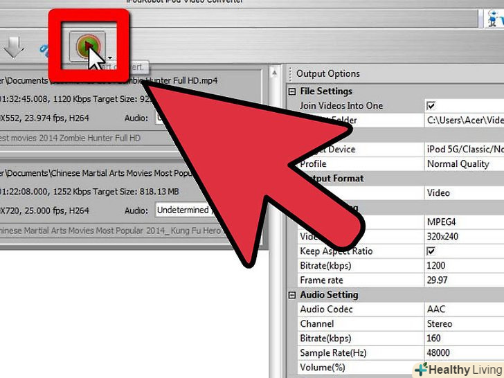 Почніть процес конвертації. якщо ви плануєте дивитися відео на iPhone або iPad, переконайтеся, що під час склеювання ви використовуєте формат MP4. В такому випадку, файл без проблем відкриється на вашому пристрої.