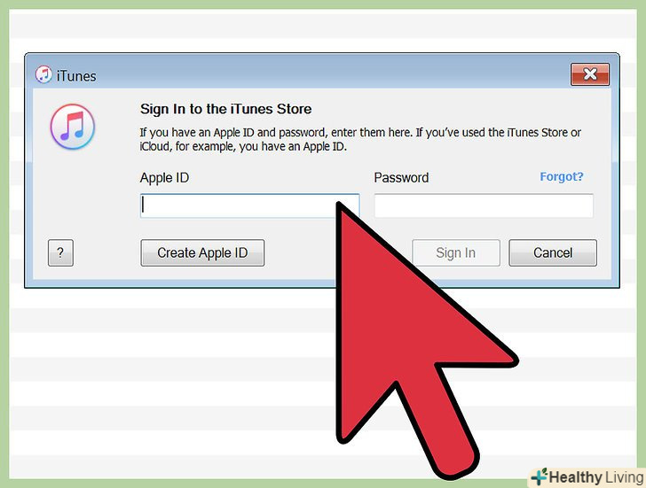 Натисніть "увійти" у верхній частині вікна iTunes. Відкриється вікно авторизації. Якщо ви вже увійшли в свій аккаунт, пропустіть ці кроки.