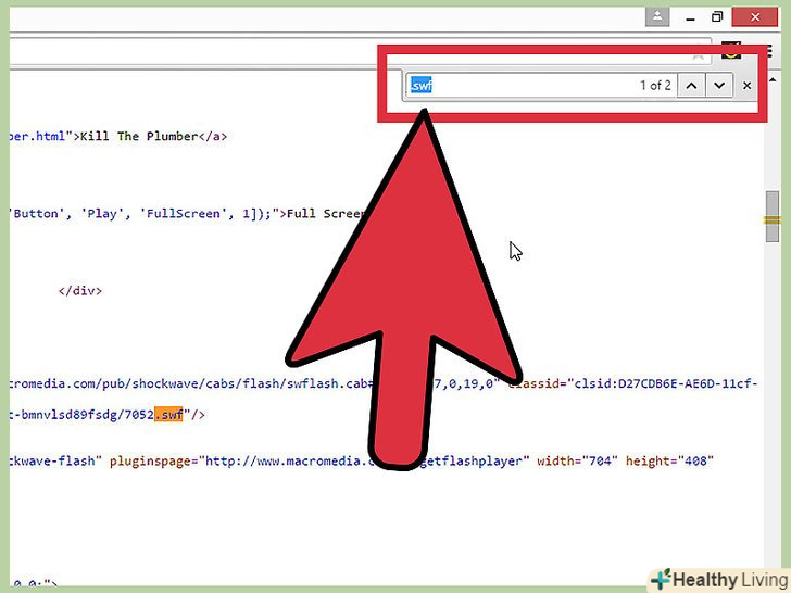 Знайдіть flash-анімацію. найпростіший спосіб це зробити-натиснути Ctrl + F і відкрити вікно пошуку. Набравши ".swf "або".flv", щоб знайти Flash-файли на цьому сайті.- Примітка: не всі файли анімації можна знайти таким способом, особливо якщо вони відкриваються іншим плеєром. Якщо ви не можете знайти потрібний файл, спробуйте використовувати інший спосіб.