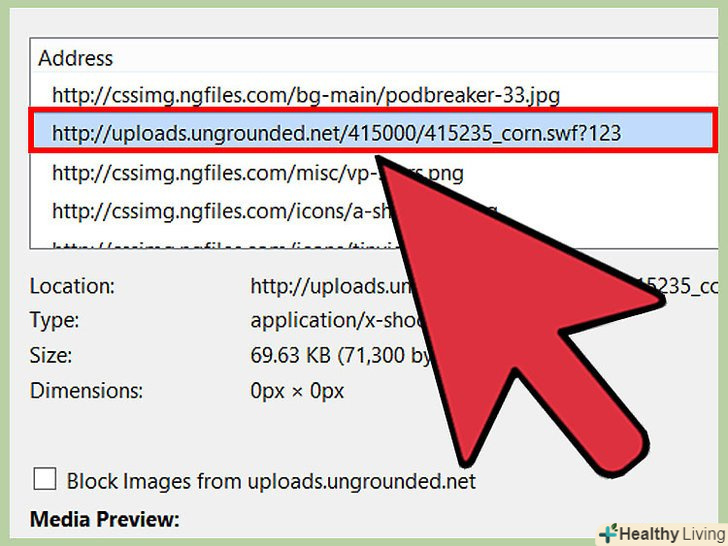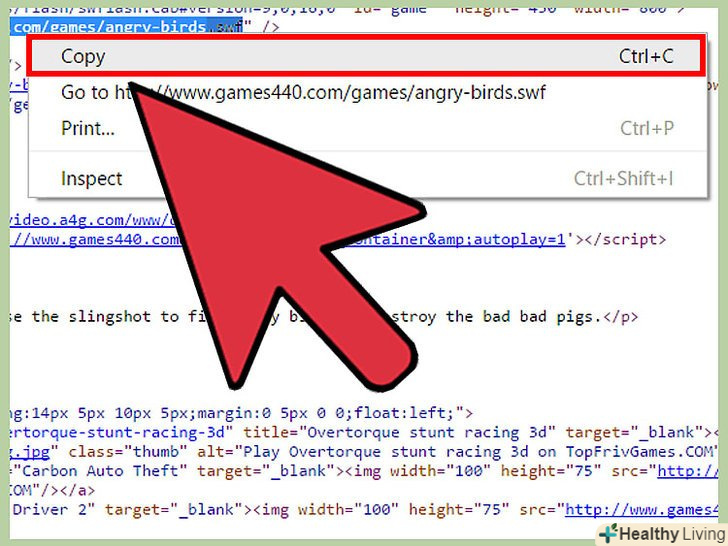 Скопіюйте частину URL адреси Flash-файлу. зазвичай це довгий рядок інформації, розділена символами косою риси, укладена в лапки і закінчується розширенням Flash-файлу (наприклад, “content/dotcom/en/devnet/actionscript/animationname.swf” ). Виділіть весь вміст лапок, але не самі лапки, і скопіюйте вміст, натиснувши Ctrl + C.