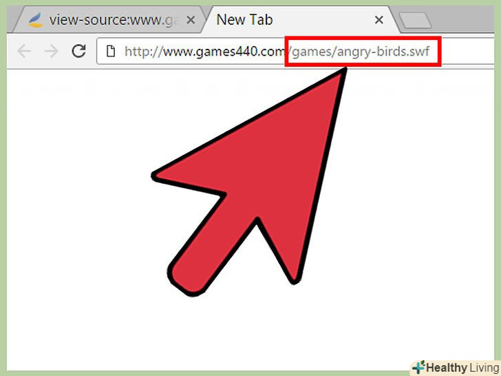 Відкрийте нову вкладку. наберіть URL-адресу сторінки, на якій Ви знайшли flash-анімацію. Якщо ви знайшли її на Example.com, наберіть www.example.com , але поки не натискайте Enter.
