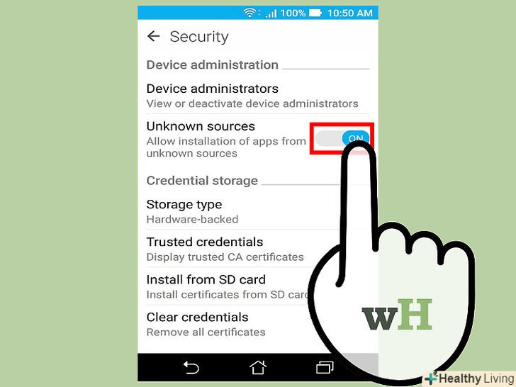 - Поставте прапорець навпроти пункту «Невідомі джерела».