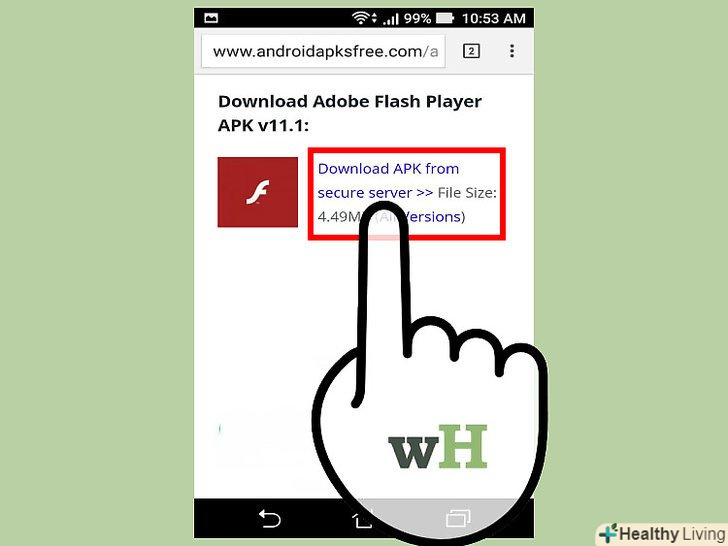 Скачайте на пристрій Android APK-файл Flash Player. скористайтеся браузером на своєму Android-пристрої, щоб завантажити останню версію для Android тут . На новіших версіях операційної системи Android це може не спрацювати.