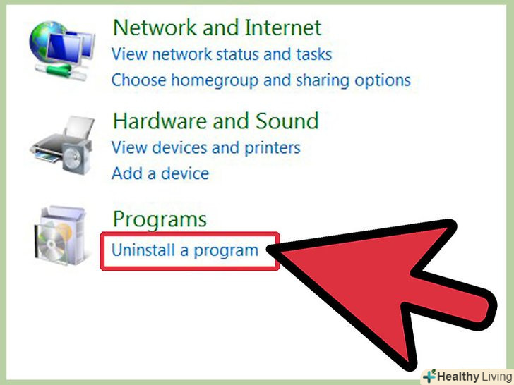 Видаліть Доповнення.після відключення доповнення ви повинні його видалити з комп'ютера. Ви можете зробити це за допомогою менеджера програм Windows.- Відкрийте Панель керування. Ви можете отримати доступ до панелі управління з меню Пуск. Користувачі Windows 8 можуть натиснутиCtrl+X і вибрати Панель управління в меню.