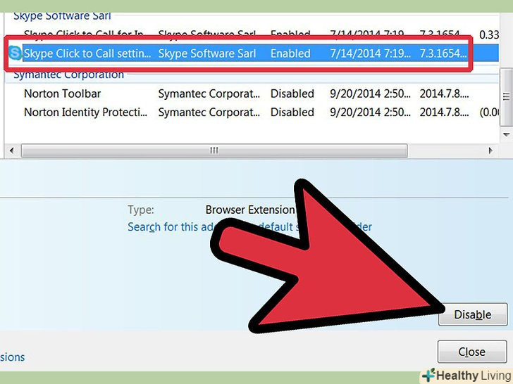 Виберіть доповнення, яке хочете вимкнути.в одній програмі може бути встановлено кілька доповнень. Натисніть Відключити , щоб вимкнути Доповнення.
