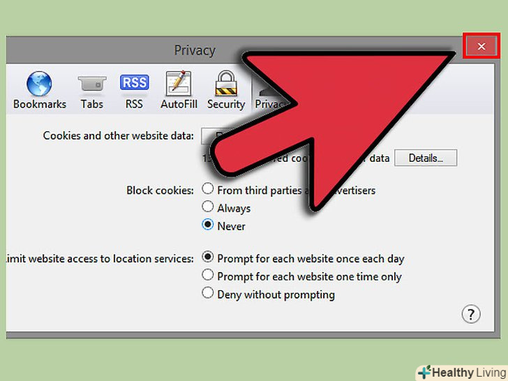Закрийте вікно, клікнувши на кнопку "х". це збереже ваші нові налаштування в Safari.