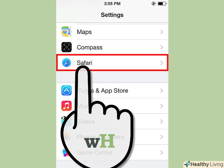 Клацніть по рядку "Safari". можливо, доведеться злегка прокрутити меню.