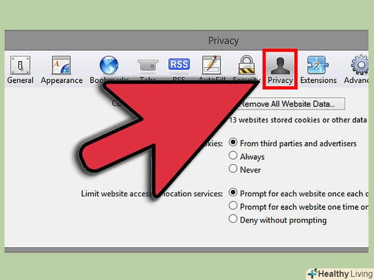 У вікні клікніть на "Privacy".