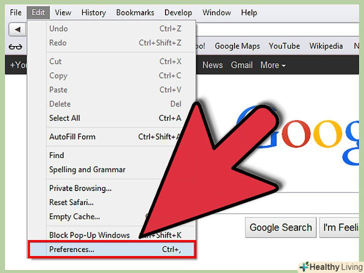 Клікніть на "Safari" в меню.
