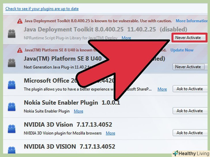 Вимкніть Java в браузері. для цього скористайтеся методами, які описані в наступних розділах даної статті. Якщо Ви користуєтеся Internet Explorer, Java буде відключена, коли ви виконаєте дії, описані в цьому розділі.