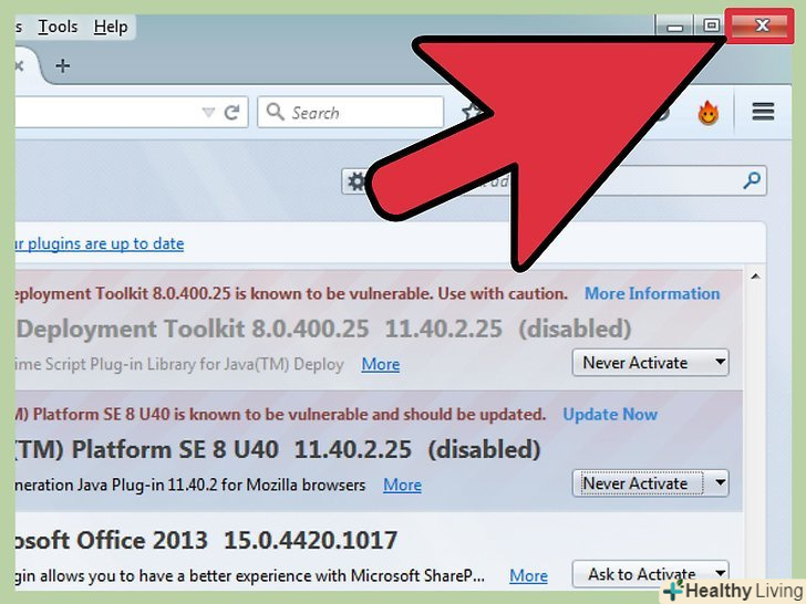 Закрийте всі запущені браузери. так ви уникнете конфліктів, коли будете відключати Java.