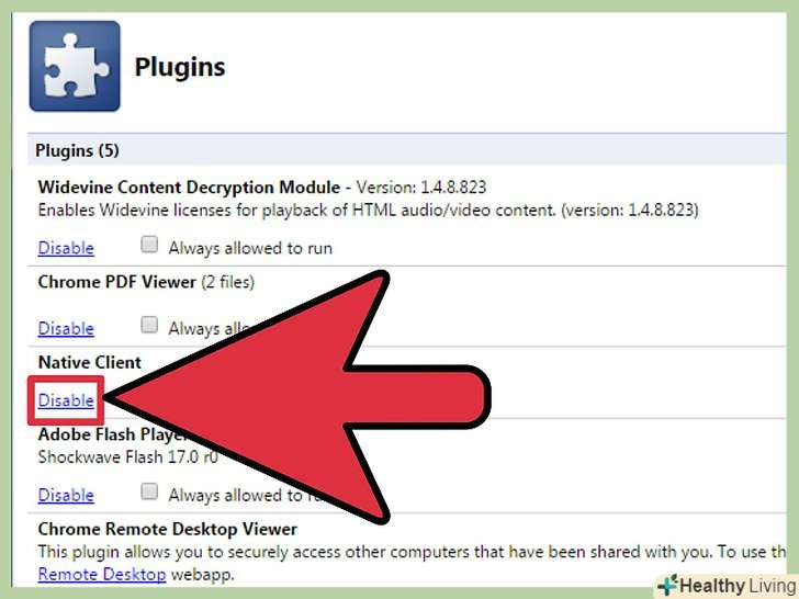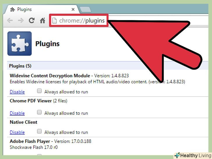 Запустіть Chrome і в адресному рядку введіть chrome://plugins/ . відкриється список плагінів Chrome.