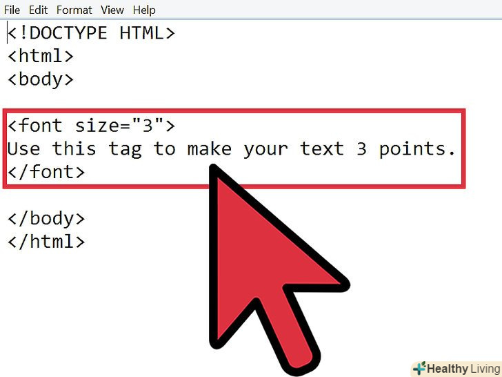 Для зміни розміру тексту виконайте аналогічні кроки:- lt;font size="3" gt;Використовуйте цей тег для установки розміру шрифту 3 пункту.lt;/fontgt;