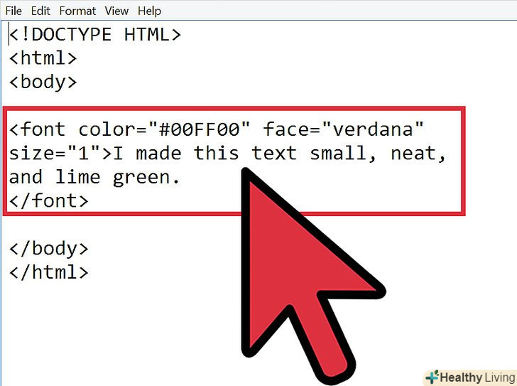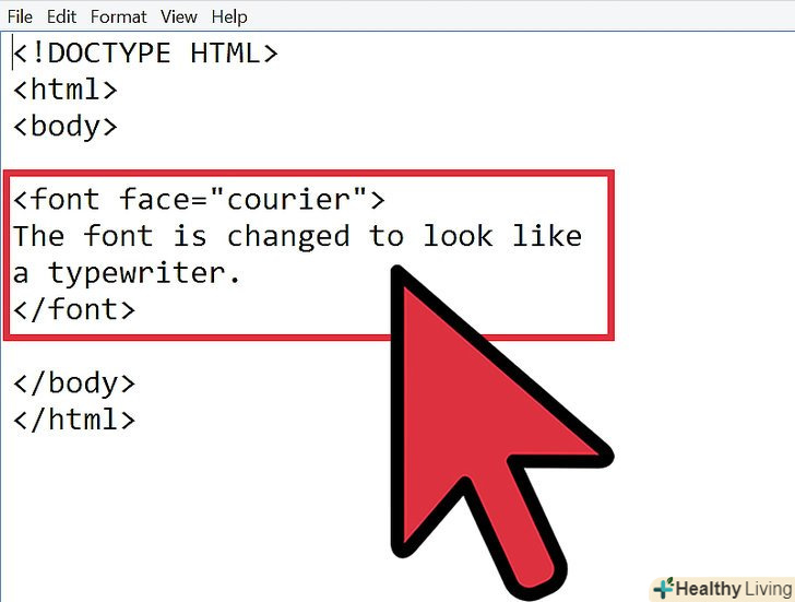 Припустимо, що у вас вже відкритий HTML код. якщо ви хочете додати / відредагувати текст, то він буде укладений всередині тега шрифту.- Наприклад:lt;font gt;це текст.lt;/fontgt;