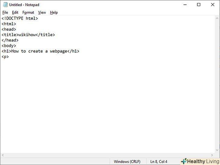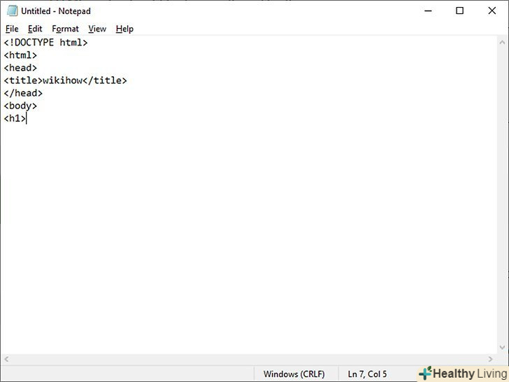 Введіть lt;!DOCTYPE htmlgt; і натисніть ↵ Enter . Так ви повідомите веб-браузеру, що це документ HTML.