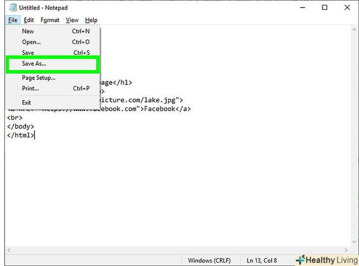 Клацніть поЗберегти . ця опція знаходиться внизу вікна. Буде створено HTML-файл.- Зазвичай HTML-файли відкриваються у веб-браузері за замовчуванням.