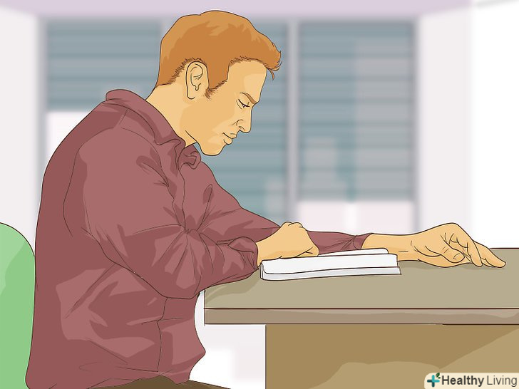 Створіть відповідні умови для роботи.Читайте вдома в тихому приміщенні на зразок спальні або підіть в бібліотеку. Вимкніть все, що може вас відволікати: телефон, комп'ютер, телевізор, інтернет. Читайте підручник і робіть записи від руки, А телефон слід відключити або вибрати беззвучний режим.[8]- Працюйте в приміщенні з хорошим освітленням і достатнім, але не надмірним рівнем комфорту.