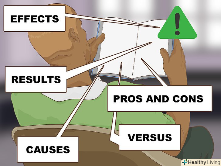 Прочитайте вступну і заключну частину параграфа.зауважте ключові слова: "причини", "наслідки", "результати", "порівняно"та" переваги та недоліки". Саме вони приведуть вас до тези або головної ідеї параграфа. Якщо заздалегідь знати основні ідеї, вам буде простіше виділити в тексті ключові моменти для більш уважного вивчення.[1]- Підкреслюйте такі слова і повертайтеся до основної ідеї або тези, щоб не втрачати нитку.