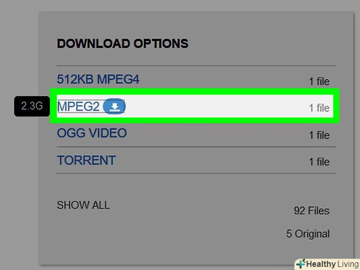 Виберіть якість і формат фільму.багато фільмів доступні в різному дозволі: від низького (360 dpi) до високого (1080 dpi), а також в різних файлових форматах, таких як MP4, MP2, WMV або MOV.- Фільми у високій якості займатимуть більше місця на пристрої.