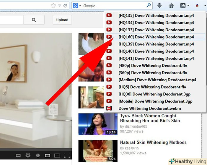 Перейдіть на сторінку з відео, яке ви хочете завантажити. Увімкніть відео. Тепер DownloadHelper зможе завантажити це відео, поруч з іконкою плагіна з'явиться маленька стрілочка. Натисніть на стрілочку для того, щоб завантажити відео.