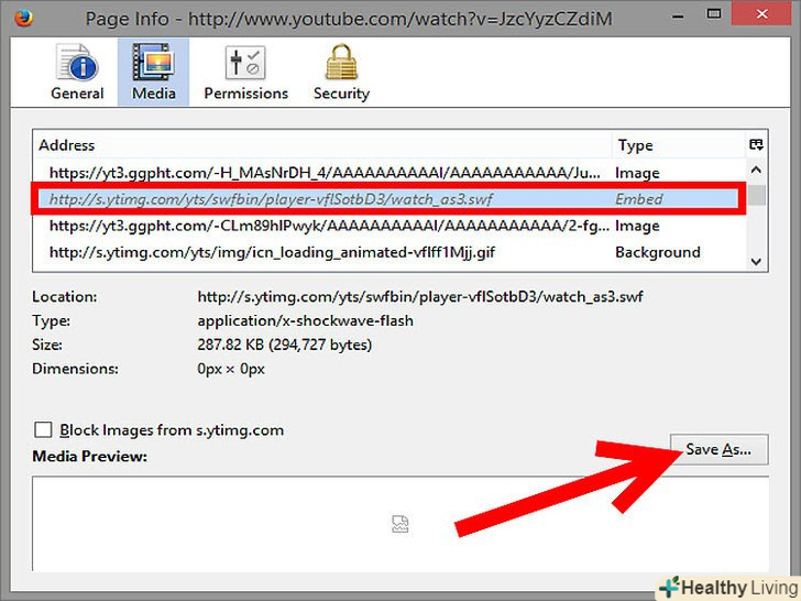 Знайдіть потрібний флеш файл. він буде відображений у форматі .SWF. Ім'я файлу буде схожим на ім'я відео на сторінці. Клацніть по ньому мишею, натисніть Зберегти як (Save As). Дайте ім'я файлу і натисніть Зберегти (Save).
