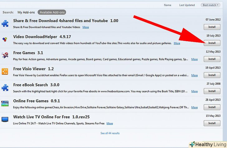 Встановіть плагін або доповнення до браузера Firefox. Firefox – браузер з найбільшою кількістю доповнень, його можна завантажити з сайту компанії Mozilla безкоштовно. Найпопулярніше доповнення для скачування файлів-DownloadHelper.- DownloadHelper автоматично буде знаходити відео файли на сторінці і ви зможете їх завантажити.