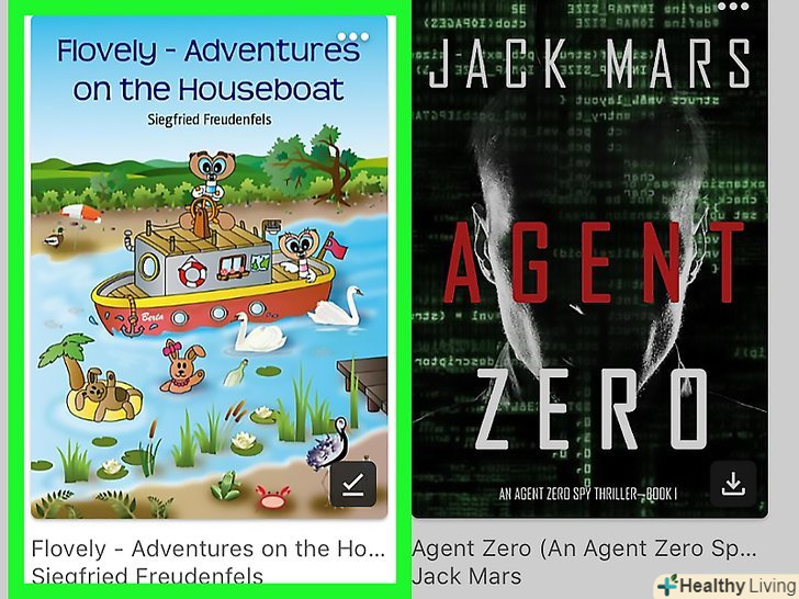 Знайдіть потрібну книгу.Прокрутіть список книг і знайдіть в ньому книгу, яку ви хочете завантажити.- На комп'ютер не можна завантажувати фрагменти книг.