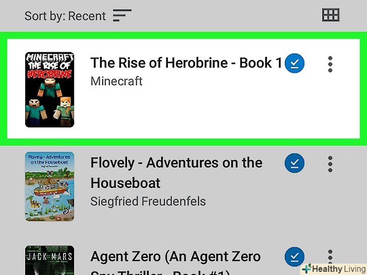 У списку знайдіть книгу, яку ви хочете завантажити на пристрій.- Якщо ви не купили або не додали безкоштовну книгу, на екрані нічого не відобразиться.
