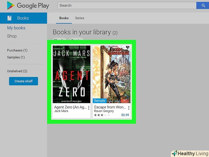 Якщо потрібно, додайте книгу в свою бібліотеку.якщо у вашій бібліотеці Google Play немає книг, додайте їх:- Перейдіть на сторінкуhttps://play.google.com/store/books / у веб-браузері і увійдіть в свій аккаунт Google;