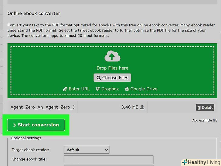 Конвертуйте скачаний файл у формат PDF.оскільки обидві опції (»PDF «і» EPUB") призведуть до завантаження ACSM-файлу, необхідно перетворити ACSM-файл в PDF-документ. Для цього:- Перейдіть на сторінкуhttps://ebook.online-convert.com/ru/convert-to-pdf/ у веб-браузері;