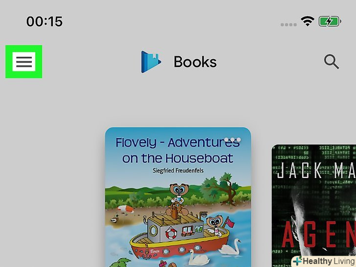 Натисніть☰. Ця піктограма знаходиться у верхньому лівому куті екрана. Відкриється меню.- ТоркнітьсяБібліотека.ви знайдете цю опцію в випадаючому меню. Відкриється список ваших книг.