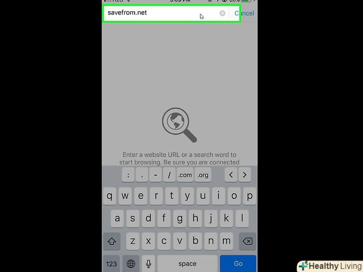 Перейдіть на сайт SaveFrom. видаліть текст у рядку пошуку, введіть savefrom.net і натисніть синю кнопку "Пошук" на клавіатурі iPod.