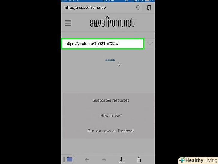 Введіть скопійоване посилання.натисніть на текстове поле "вставте сюди посилання на відео«, дочекайтеся появи клавіатури iPod, знову натисніть на текстове поле і в меню виберіть»Вставити". SaveFrom приступить до перетворення посилання в завантажуване відео.