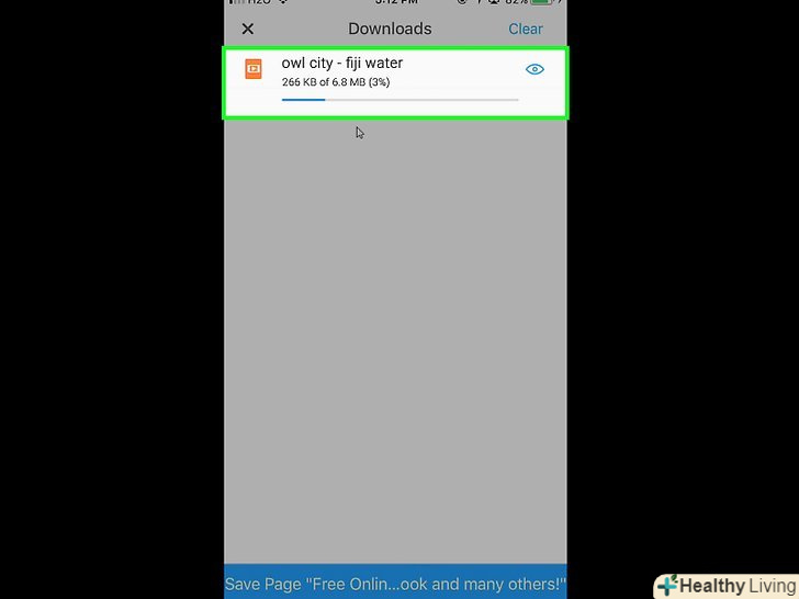 Дочекайтеся, коли скачування завершиться. щоб стежити за ходом процесу, натисніть на значок у вигляді спрямованої вниз стрілки в нижній частині екрана.- Коли відео завантажується, натисніть " X " у верхньому лівому куті сторінки, щоб продовжити.