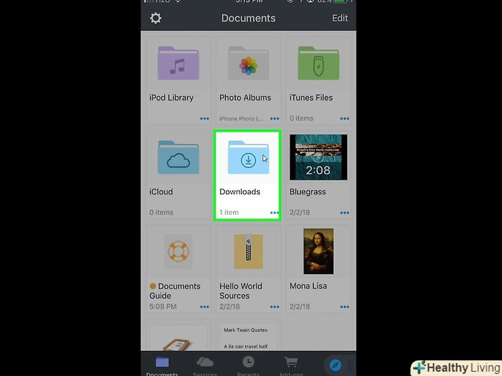 Відкрийте папку "Downloads". натисніть на значок у вигляді папки в нижньому лівому кутку програми Documents, а потім натисніть на папку "Downloads" посередині сторінки.