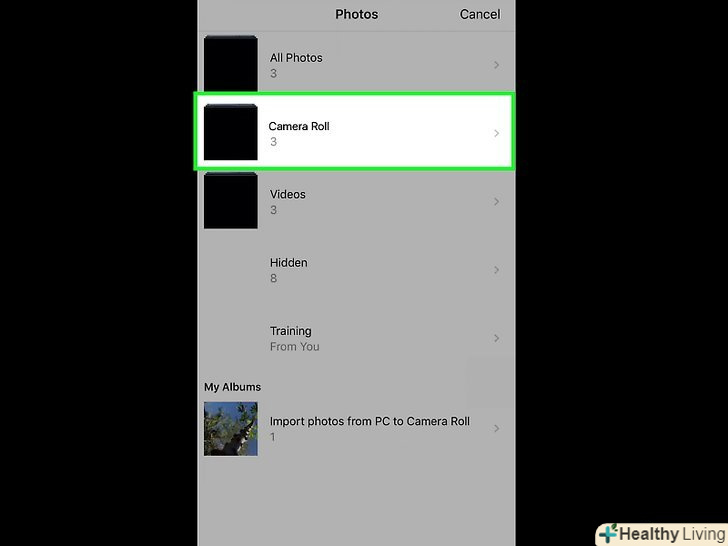 ТоркнітьсяФотоплівка.ця опція знаходиться у верхній частині програми "Фото".- Якщо на iPod включена фототека iCloud, ця опція буде називатися»Всі фотографії".