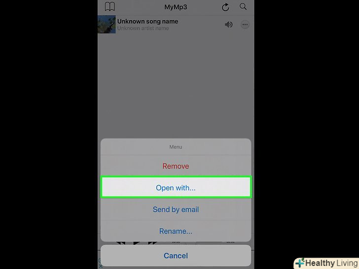 Запустіть програму MyMP3. натисніть на значок у вигляді білої музичної ноти на зелено-білому тлі.- Оскільки MyMP3 фінансується за рахунок реклами, в якийсь момент ви побачите рекламне оголошення. У цьому випадку дочекайтеся, коли в лівому верхньому кутку оголошення з'явиться символ "x", а потім натисніть на цей символ, щоб закрити оголошення.