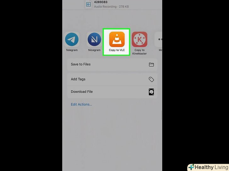 Прокрутіть вправо і натиснітьCopy to VLC (Копіювати в VLC).ви знайдете цю опцію вгорі спливаючого меню. Запуститься додаток VLC.