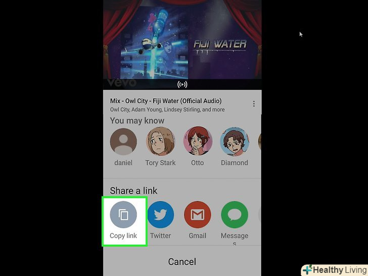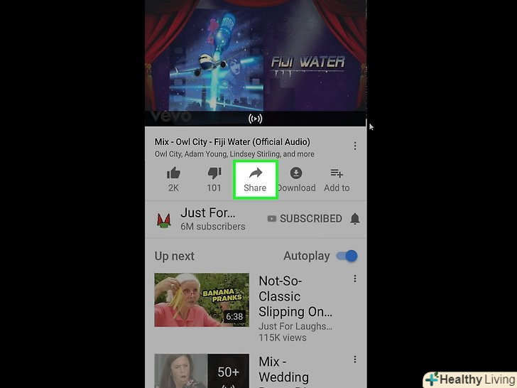 НатиснітьПоділитися.ця опція позначена значком у вигляді зігнутої і спрямованої вправо стрілки; значок знаходиться під вікном з відео. З'явиться спливаюче вікно.