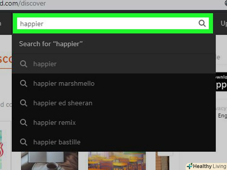 Натисніть на рядок пошуку у верхній частині сторінки.у цьому рядку відобразиться текст " Search for artists, bands, tracks, podcasts» (пошук виконавців, груп, треків, подкастів).