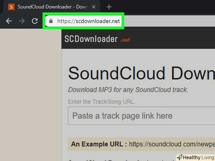 Відкрийте сайт сервісуSoundCloud to MP3.- Оскільки такі сервіси працюють нестабільно, в разі неполадок з сервісом SoundCloud to MP3 скористайтеся аналогічним безкоштовним сервісом, наприклад,Klickaud.