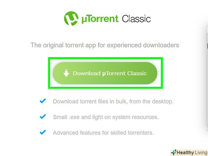 Скачайте торрент. натисніть на кнопку "Завантажити»," Завантажити торрент " або щось подібне (наприклад, Завантажити [ім'я файлу]).- На багатьох торрент-трекерах під кнопками завантаження ховаються помилкові рекламні оголошення, які перенаправляють вас на інший сайт. Переконайтеся, що за форматом і стилем посилання для завантаження відповідає торрент-трекеру. Наведіть курсор миші на посилання, щоб перевірити, що URL-адреса посилання розташована на тому ж доменному імені, що і торрент-трекер.
