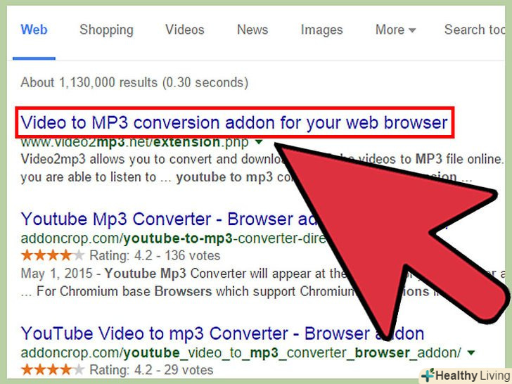 Виберіть Розширення.система пошуку знайде безліч відповідних варіантів, в тому числі безкоштовних. Розширення відрізняються один від одного простотою використання, якістю MP3 і рівнем конфіденційності (відсутність шпигунського ПЗ). Вивчіть відгуки до розширення, щоб вибрати якісне і надійне Доповнення.- Слід вибирати таке розширення, яке не надто сповільнить роботу браузера, а також не розмістить на комп'ютері шпигунського ПЗ або небажаних програм.