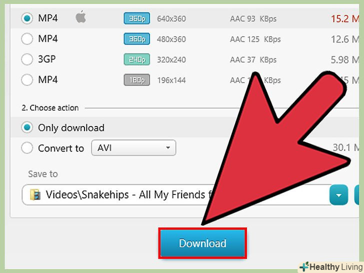Виберіть якість завантаження.програма для перетворення може запропонувати кілька варіантів завантаження. Чим вище якість, тим більше Розмір файлу (якісний файл займе більше місця на жорсткому диску комп'ютера, але з іншого боку і якість звуку буде набагато краще).- Завжди можна повернутися і завантажити більш якісну версію ролика, повторивши весь процес завантаження і вибору якості. Не бійтеся експериментувати з розмірами файлів.