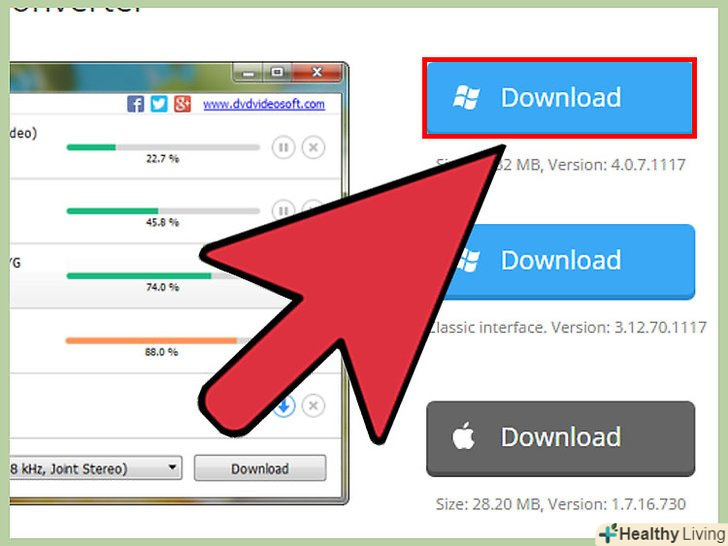 Завантажте програму для конвертації.натисніть "Завантажити" на сайті програми, щоб почати процес установки. Процес установки різних додатків відрізняється, так що дотримуйтесь підказок.- В процесі установки деякі програми пропонують завантажити інше ПЗ або сторонні панелі інструментів, які не є частиною програми для конвертації. Швидше за все вони вам просто не потрібні. Зазвичай для скасування завантаження сторонніх програм досить зняти такі прапорці в процесі установки.